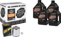 V-Twin Oil Change Kits are designed to ease the oil change process in your H-D® motorcycle. Each kit comes with all necessary products to complete a full oil change including Synthetic or Mineral 20W50 Engine Oil, Transmission Oil, Primary Oil, Drain Plug O-rings and a ProFilter Wrench Removal Premium Oil Filter. ProFilter Premium Spin-on Filters feature M-Pleat technology, a structural paper design allowing for larger filtration area and greater capacity to hold contaminants, extending filter life by 20-30%. Silicone Anti-Drain Back Valve to allow optimum oil pressure to be obtained quickly, reducing the time for oil to reach critical areas at start up. 100% leak tested and pre-lubricated gasket to ensure seal to engine.