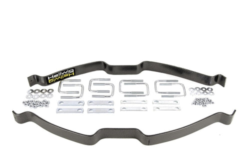 Hellwig's medium-duty EZ-990 Helper Springs pack a lot of capability in every box. Packaged complete with the same heavy duty powder coated and plated components, hardware and installation instructions as our heavy duty helper spring products, these kits are designed for the vehicles that need lighter assistance in carrying a load. Simple bolt on design using common hand tools provide the installer ease of installation and the vehicle owner hassle free use. Ideally suited for light towing and loads, these units are fully adjustable using the heavy duty U-bolts included in the kit using simple hand tools. If your tow and haul needs change, simply adjust the heavy duty U-bolts to suit the new load requirements. Once installed and adjusted you are free to haul or tow with greater control and stability. Manufactured with heat treated ASTM 5160 alloy spring steel in our California based facility, these units are rated up to 2,000 lb. level load carrying capacity. They are a great cost effective spring solution and can be adjusted independently for uneven side to side loads.