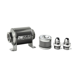 DeatschWerks Stainless Steel 8AN 10 Micron Universal Inline Fuel Filter Housing Kit (70mm)