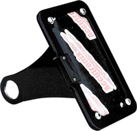 Accutronix "horizontal" and “vertical” side mount license plate kits will really clean up the back of your Sportster. They mount to the left side of the swing arm and are secured with the axle nut. Installation instructions and mounting hardware are included as required. Depending on how you assemble it, your license plate will sit "horizontal" or “vertical”. Machined from 6061 T-6 Billet Aluminum.